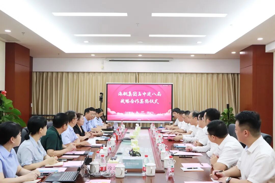 6月7日,中建八局与海南海钢集团有限公司战略合作签约仪式在海口举行。海南海钢集团有限公司党委书记周湘平,党委副书记、总经理夏亚斌,中建八局副总经理韩兴争出席仪式并共同见证签约。