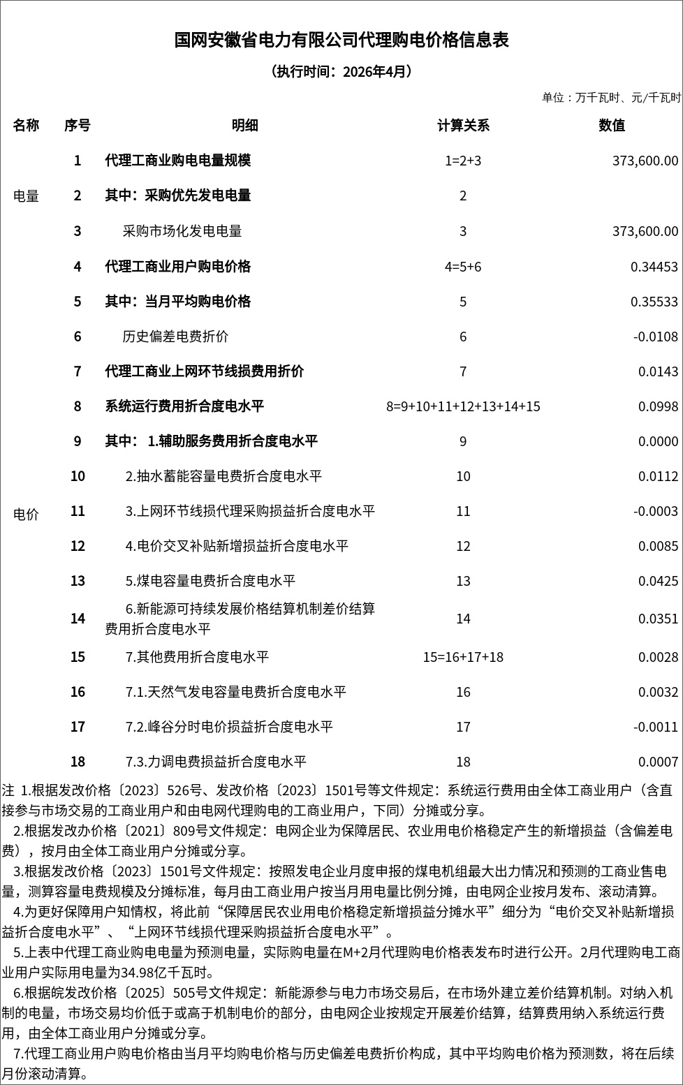 安徽省发展改革委关于发布我省4月份电网企业代理工商业用户电价表和代理购电价格表的通告